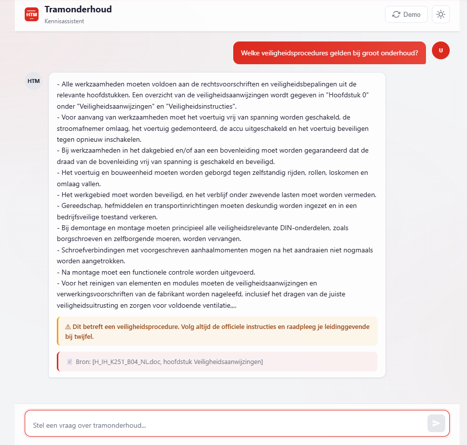 This solution utilized AI search and retrieval to support maintenance by providing quick access to procedures, fault codes, and safety instructions in a transport setting.